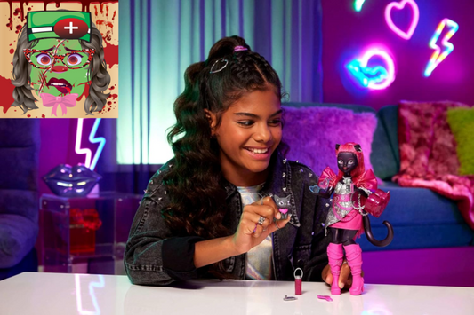 Catty Noir Doll, Werecat with Pet Cat Amulette & Accessories like Backpack, Musi