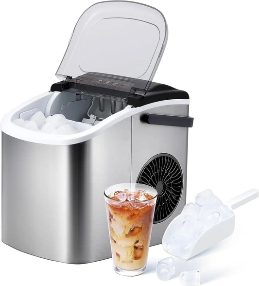 YSSOA Portable Ice Maker for Countertop, 6 Mins 9 Ice Cubes, 26lbs Ice/24H, Self-Cleaning, with Ice Spoon and Basket
